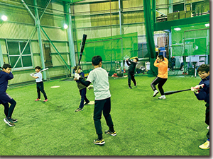 1人ではチェックの難しいバッティングに必要な身体の使い方(腕の使い方や体重移動の仕方)はもちろんのこと、バッティングに欠かせないスイングの軌道チェックなども細かい部分までアドバイスをし、チェックを行います。一定時間、集中して打撃練習を行うことでバッティングの基本を確実に身体に定着させ、打撃力やスイングのさらなる向上を目指します。